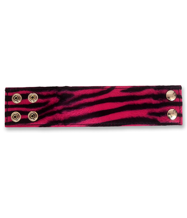 Throw it on with ripped denim, a leather jacket or your favourite band tee and it adds instant attitude. This is the kind of accessory that feels scrappy in the right way and bold without looking forced. If you want a handmade punk wrist cuff with a wild striped finish, this pink zebra print version gets the job done.
