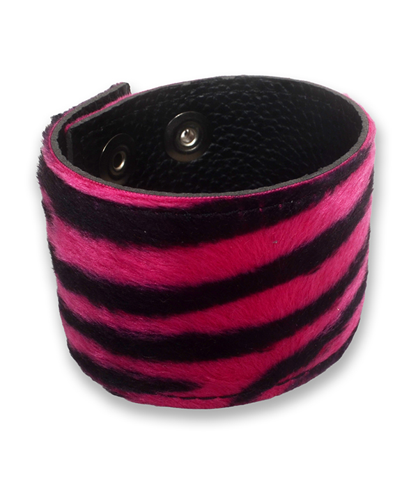 This pink zebra print wrist cuff is loud, sharp and built for making a mess of boring outfits. Handmade in the UK, it mixes bright faux fur with black PU leather for a look that lands somewhere between trash glam, old-school punk and full-on alternative attitude. The hot pink and black zebra pattern hits hard straight away, so this piece does not sit quietly in the background.