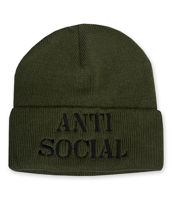 Anti Social Embroidered Olive Green Beanie