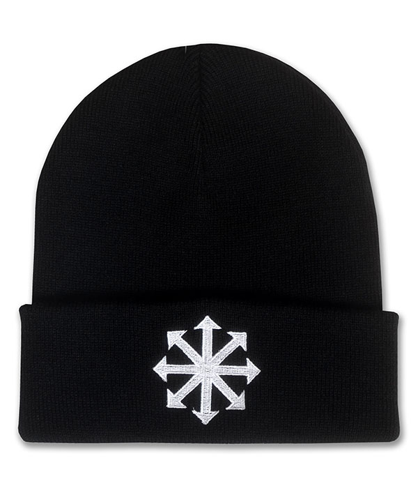 A black beanie embroidered with the Chaos Star in white—made for punks, witches, and chaos magicians who don’t play by the rules.