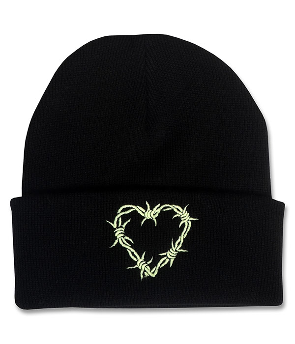 Barbed Wire Heart Glow in the Dark Beanie
