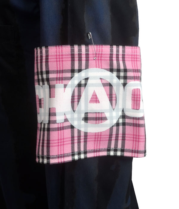 Sweet? Never. This Pink Chaos Armband might come in a baby pink tartan, but it packs a riot in every stitch. The bold white CHAOS print, wrapped around a heavy anarchy symbol, flips the script on softness with full-blown rebellion. Inspired by the classic Seditionaries armbands of the late '70s, it blends anarcho edge with DIY glam in a way that demands attention.