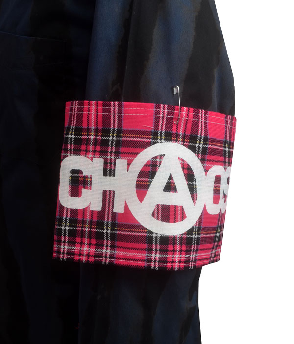 When subtlety isn't your thing—and let's face it, it shouldn’t be—strap on this pink Chaos armband and make your presence felt. Inspired by original Seditionaries pieces, this loud and proud accessory smashes tradition with hot pink tartan, bold white CHAOS print, and a massive anarchy “A” that couldn’t be ignored if it tried.