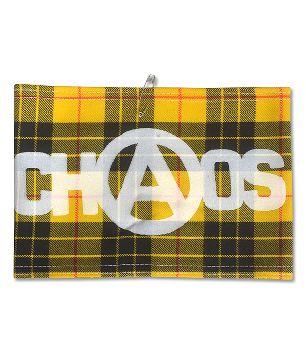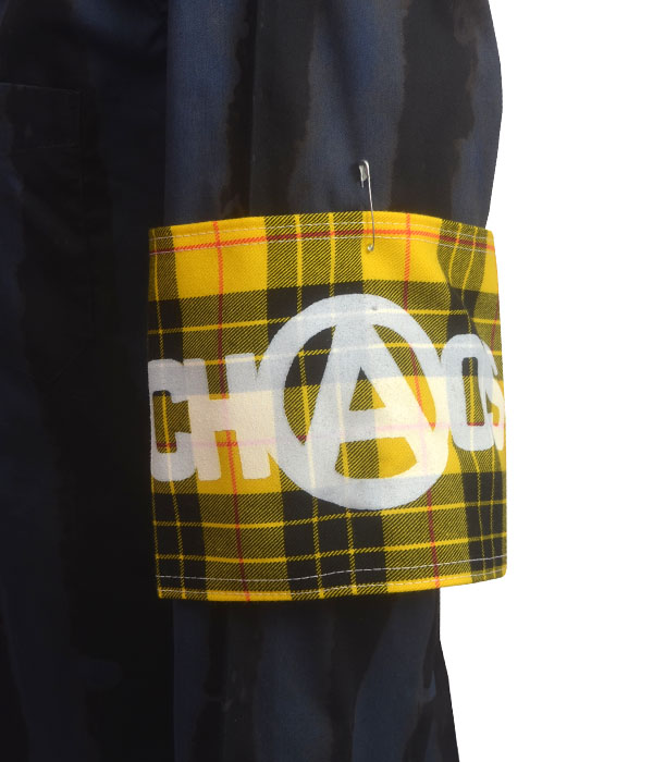 The Yellow Chaos Armband isn’t here to behave. It’s built to be seen, shouted about, and sewn into the punk legacy. With its bright yellow tartan and oversized white CHAOS lettering wrapped around an anarchy symbol, it throws back to the original Seditionaries chaos—only this time, it’s louder.