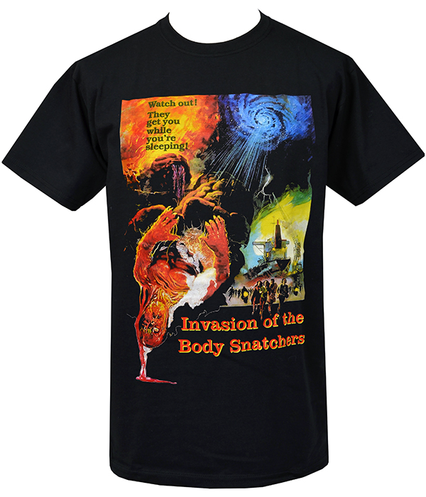 Men’s Invasion of the Body Snatchers horror t-shirt inspired by classic sci-fi cinema and vintage movie poster artwork.