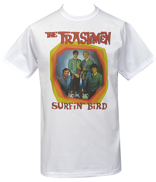 Men’s white The Trashmen “Surfin’ Bird” T-shirt inspired by classic garage rock and proto-punk attitude.