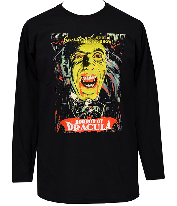 Sink your teeth into this Horror of Dracula long sleeve shirt—perfect for vampire fans, horror junkies, and undead style seekers.