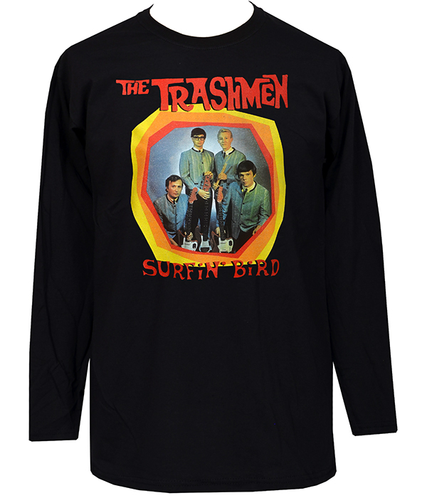 Men’s black The Trashmen “Surfin’ Bird” long sleeve T-shirt inspired by classic garage rock and proto-punk.