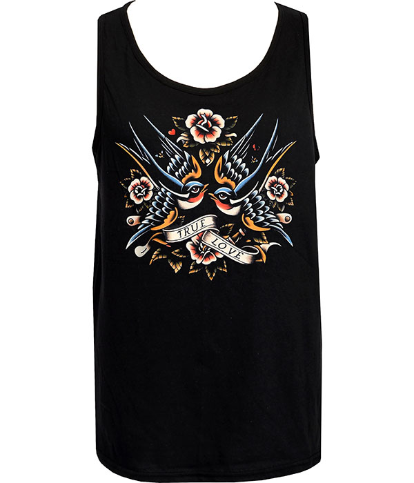 ‘True love’ Men’s Rockabilly Swallow Tattoo Tank Top