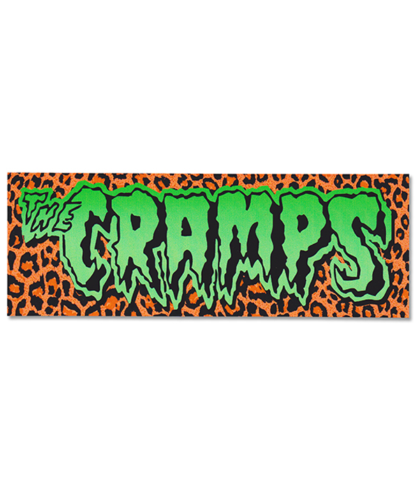 The Cramps Orange Leopard Sticker fuses horror and sleaze with neon green lettering over a fierce orange leopard print. A psychobilly essential.