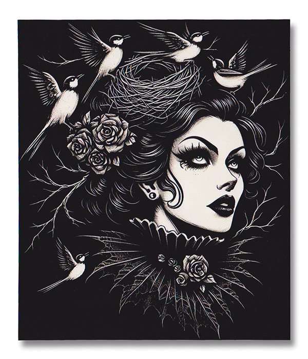 Victorian Gothic Bird Nest Lady Sticker Decal
