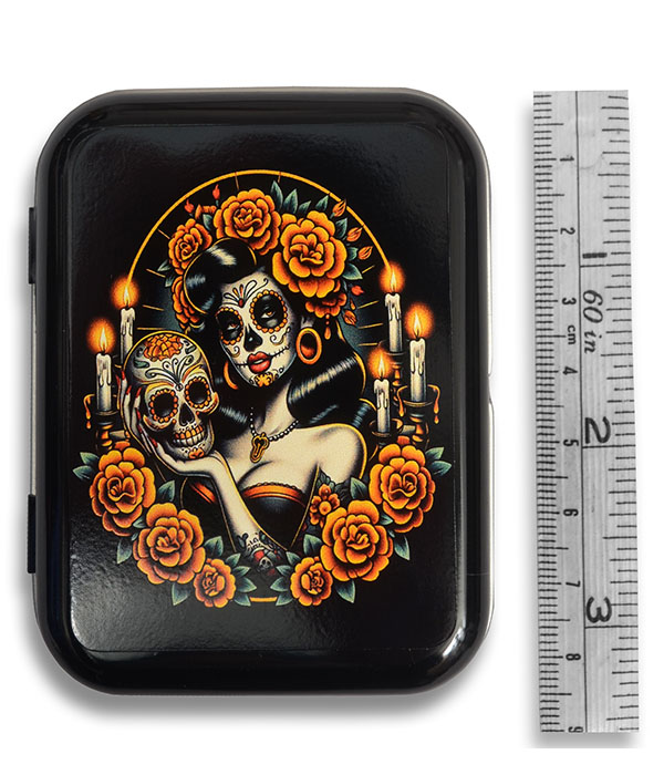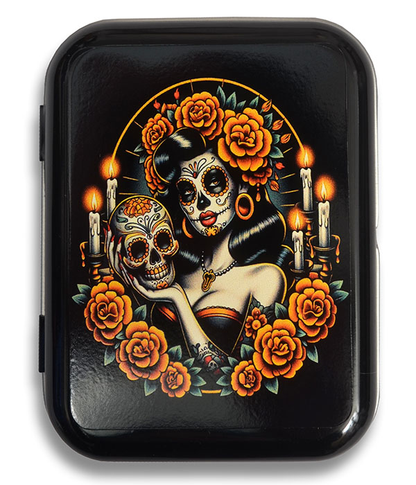 Day of the Dead Tattoo Pin-up Hinged Metal Tin