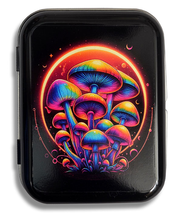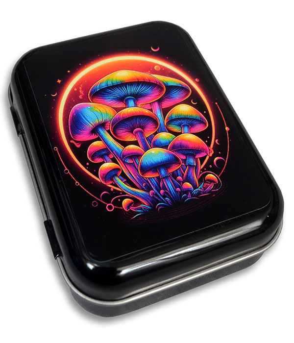 Psychedelic Magic Mushroom Hinged Metal Tin