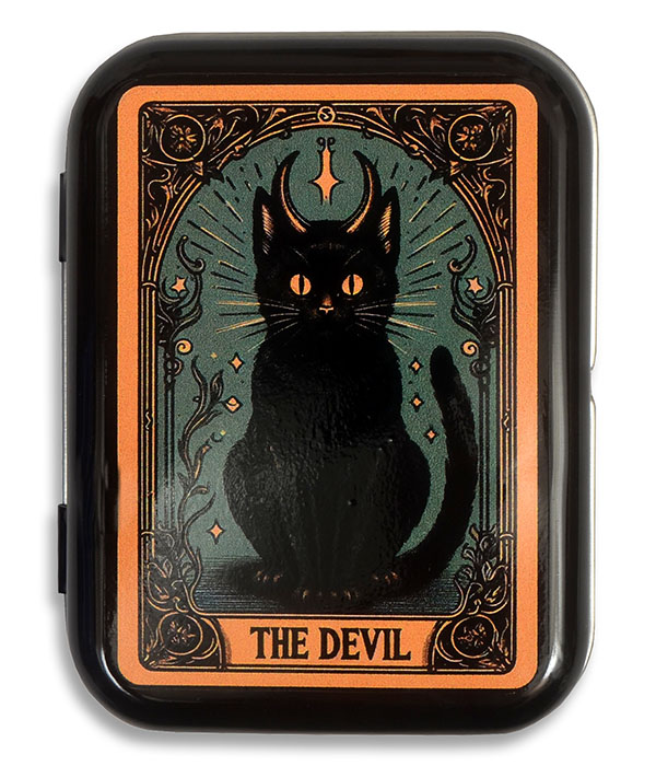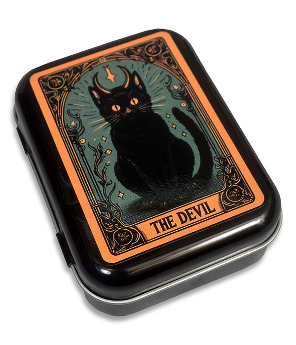 ‘The Devil’ Cat Tarot Card Gothic Hinged Metal Tin