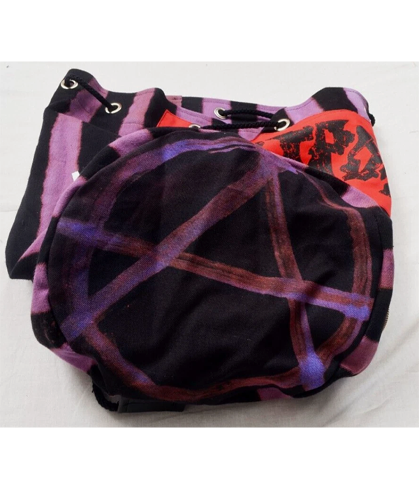 Every inch of this bag nods back to the legendary Seditionaries era while pushing the chaos forward. The slanted metal zip slices across the artwork like a deliberate act of rebellion. Meanwhile, the oversized anarchist-style symbol painted across the base adds a proper underground edge. Because if your bag doesnโ€™t look like it couldโ€™ve hung in the back room of the Kingโ€™s Road shop, whatโ€™s even the point?