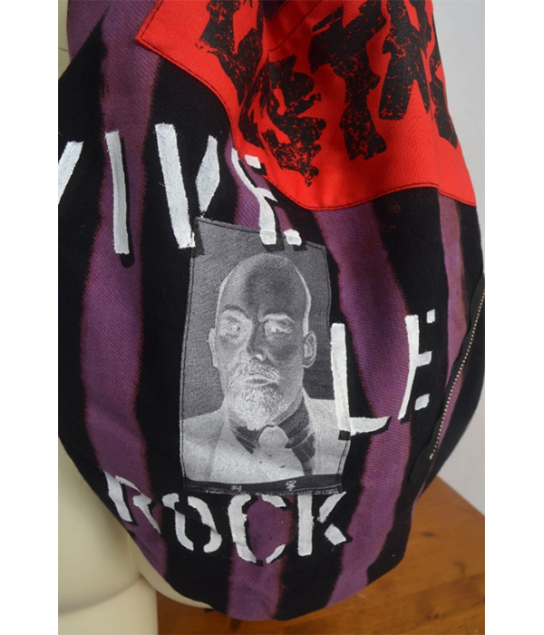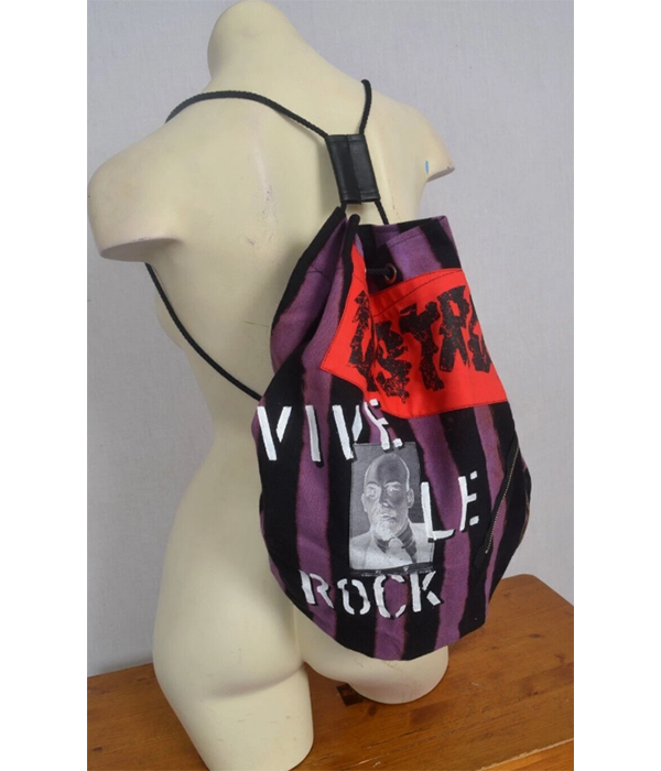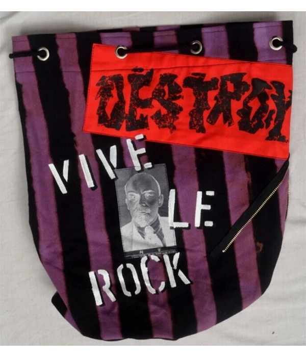 This handmade-in-the-UK duffle bag drags the classic Seditionaries spirit straight into the present, refusing to play nice and refusing to shut up. Built with raw DIY energy, it blends bold black-and-purple stripes with that unmistakable ripped-from-the-streets Seditionaries attitude. The front features a distressed red โ€œDESTROYโ€ panel, stencilled VIVE LE ROCK lettering, and a stark Lenin patch that keeps the whole piece defiantly confrontational โ€” exactly how punk should feel.