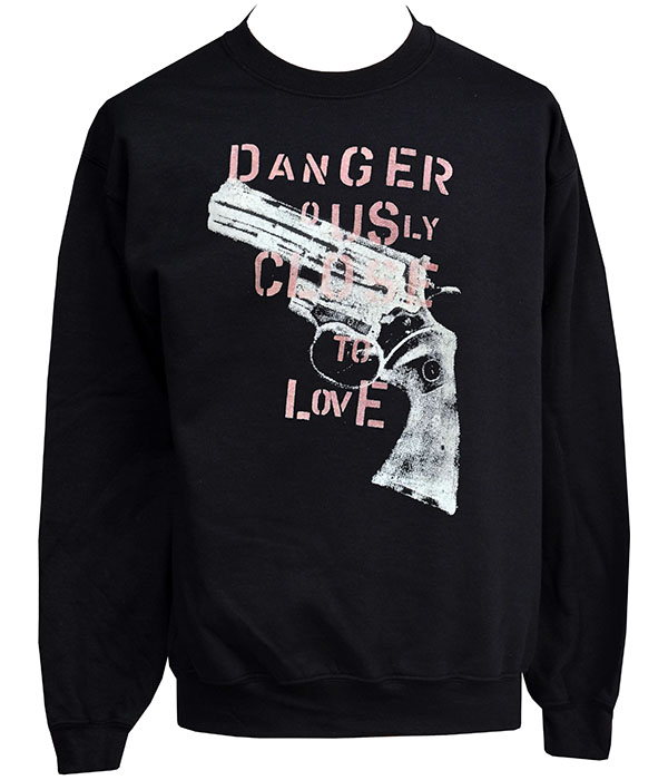 Seditionaries-style and punk to the core – this “Dangerously Close to Love” sweatshirt pulls no punches.