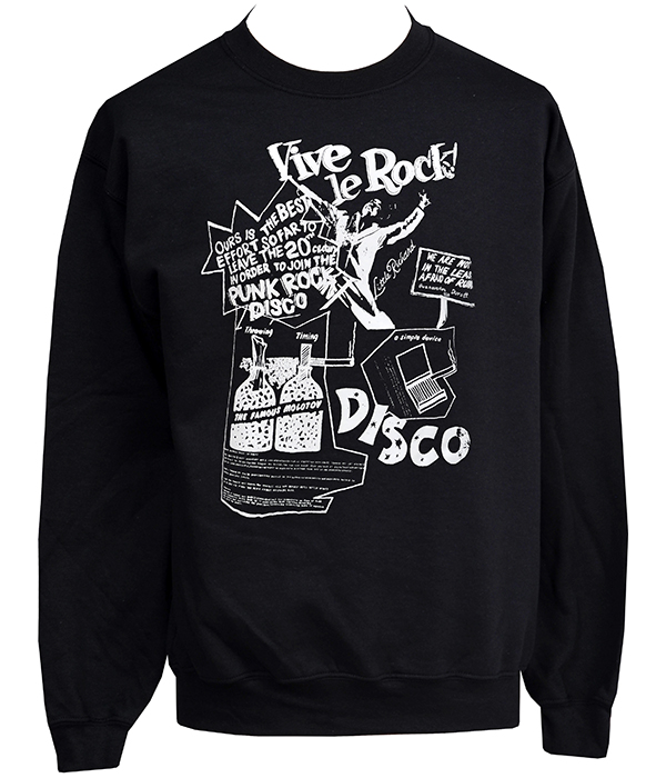 Unisex black punk sweatshirt with bold Seditionaries-style Vive Le Rock print – anti-disco attitude stitched in.