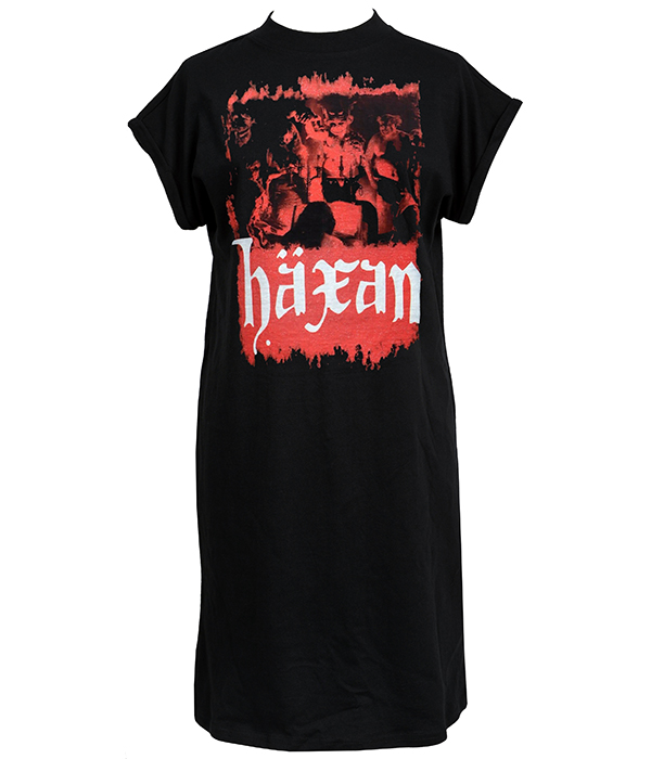 This Häxan horror t-shirt dress channels occult cinema, satanic panic, and vintage witchcraft in one black-as-hell piece.