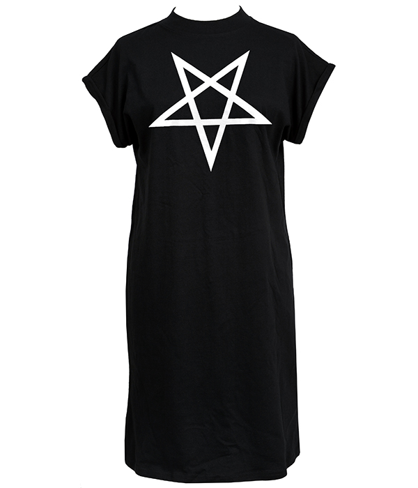 Summon your style demons with this minimalist inverted pentagram women’s t-shirt dress – goth simplicity done right.