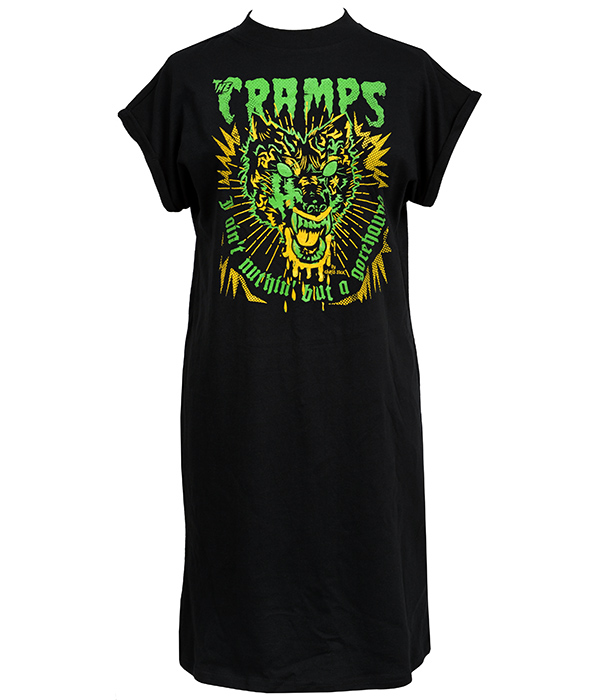 Trashy, sleazy, and dripping with punk attitude—The Cramps Gorehound t-shirt dress features gnarly artwork by Chris Sick, perfect for horror rock ‘n’ roll fiends.