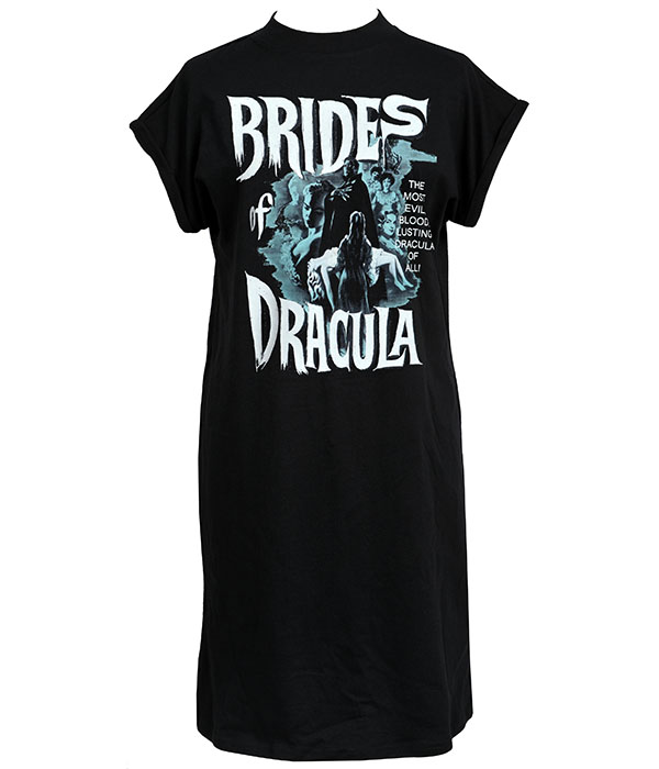 Oversized women’s t-shirt dress with vintage Brides of Dracula horror print – gothic, bold, and undead-chic.