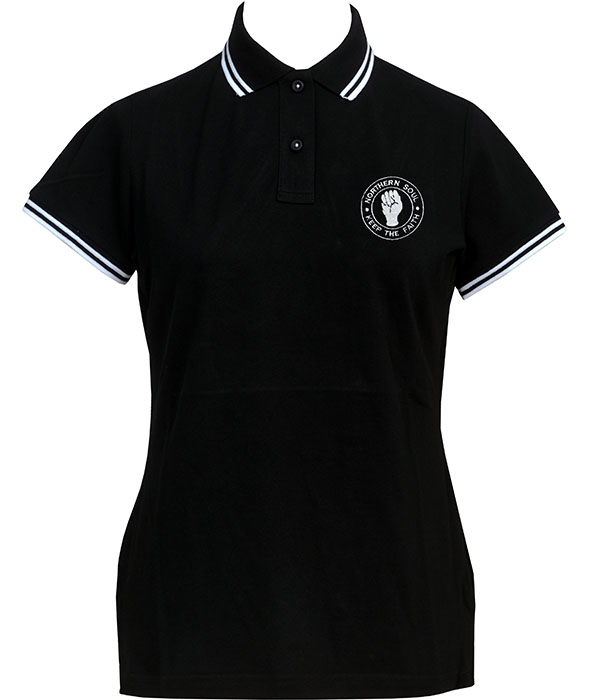 Keep yourself looking sharp in this embroidered button-up polo shirt with white contrast tip edging, embroidered in the UK and perfect for any Northern Soul and Wigan Casino fans