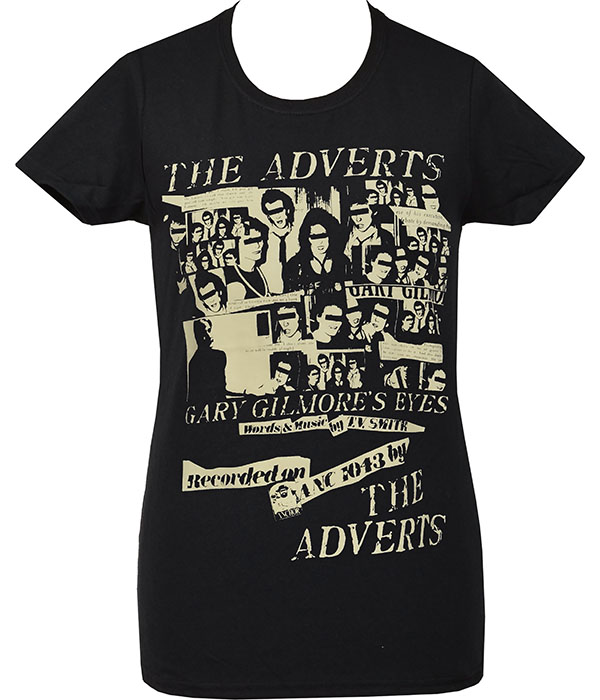 Hereās a piece of punk history you can wear. This womenās black t-shirt features the iconic artwork from Gary Gilmoreās Eyes by The Adverts ā one of the fiercest bands to slash their way out of the UK punk explosion in ā77.