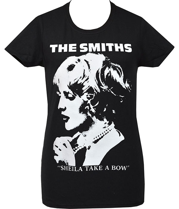 The Smiths Sheila Take A Bow women’s t-shirt with striking monochrome artwork inspired by the 1987 indie classic. Essential for 80s alternative fans.