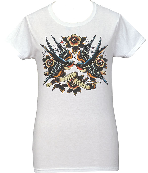 ‘True love’ Women’s Rockabilly Swallow Tattoo T-Shirt