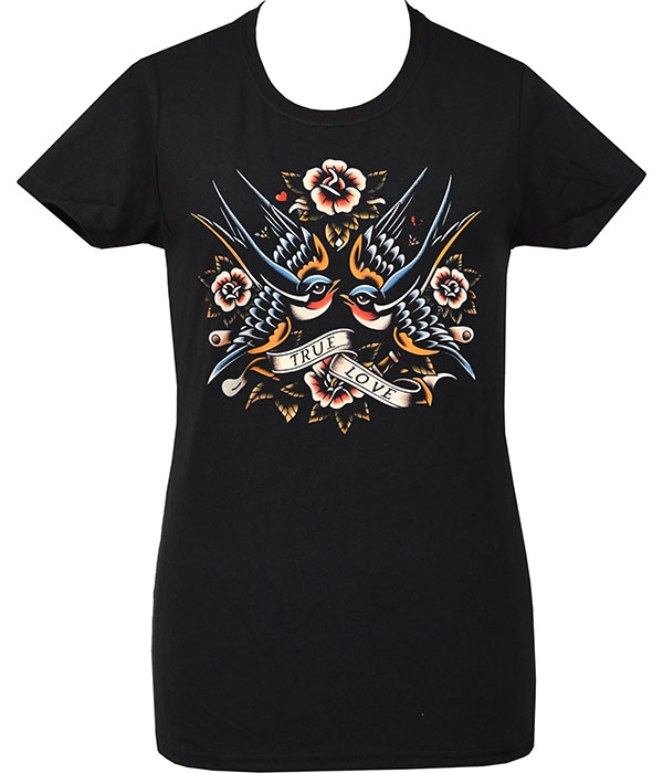 ‘True love’ Women’s Rockabilly Swallow Tattoo T-Shirt