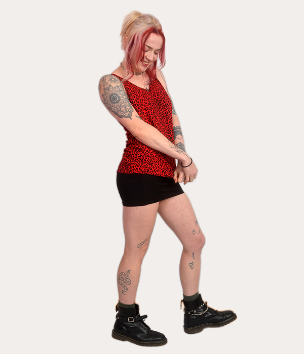 If you’re looking for a women’s red leopard tank top made in the UK with genuine punk energy, this one delivers. Bold colour, classic attitude, zero compromise.