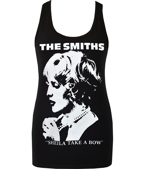 The Smiths Sheila Take A Bow women’s tank top with bold monochrome artwork inspired by the iconic 1987 single. A must-have for 80s indie fans.
