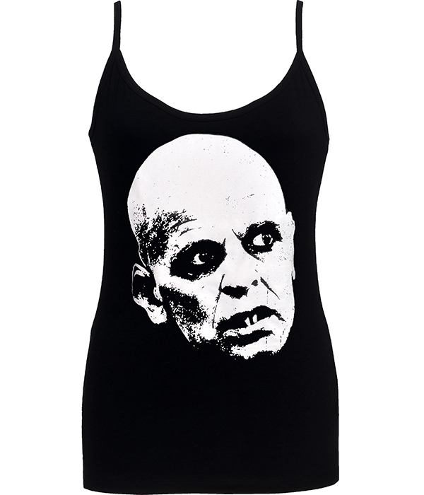 Women’s gothic horror strappy top with bold Nosferatu vampire print – lightweight and hauntingly iconic.