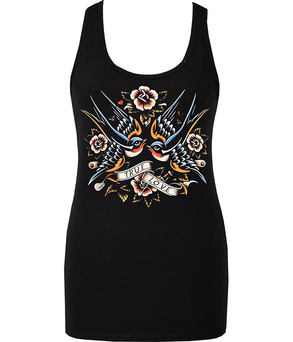 ‘True love’ Women’s Rockabilly Swallow Tattoo Tank Top