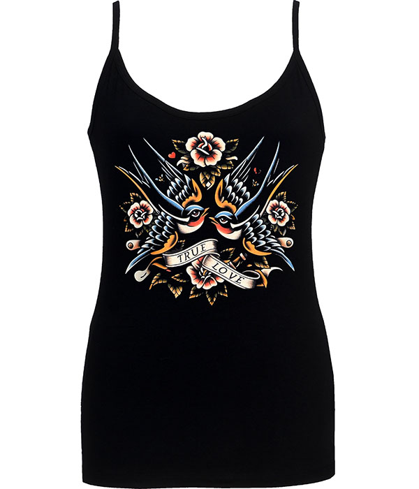 ‘True love’ Women’s Rockabilly Tattoo Spaghetti Strap Tank Top